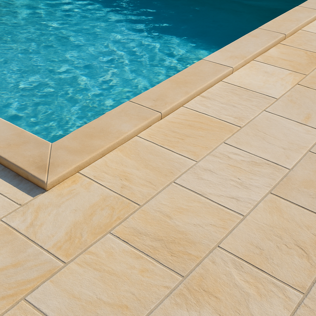 Dê um toque elegante à sua piscina ou ao redor da entrada da piscina com pedras resistentes, antiderrapantes e de alto padrão estético.